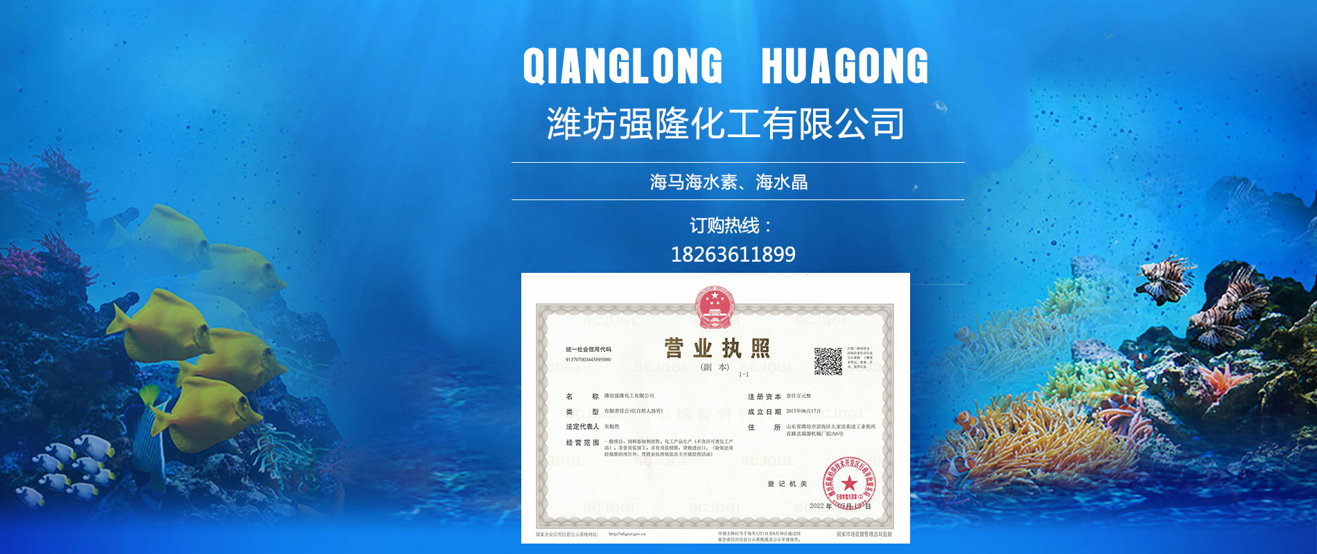 濰坊強隆海水晶廠家位于美麗的風箏之都山東濰坊,北鄰渤海,地下是儲存豐富的鹵水寶庫,這里是全國很大的海洋化工生產基地。海洋化工產業悠久,人才濟濟,技術雄厚。交通發達,航運、鐵運、汽運網絡四通八達。